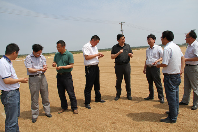 胡總一行先后察看了潘莊生產(chǎn)區在田小麥收割、科技園區工廠(chǎng)化育秧以及大華種業(yè)三河分公司小麥收購現場(chǎng),全面了解 “三夏”進(jìn)度。胡總指出,三河三夏形勢大好,準備充分,措施得力,產(chǎn)量上有新突破。同時(shí),胡總要求三河分公司要按照“四保一增一安全”的目標,重點(diǎn)要抓好保種工作,克服災害性陰雨天氣帶來(lái)的影響,落實(shí)好“三夏”各項應急措施,保證適期裁插,確?!叭摹蹦繕瞬蛔?,力爭全勝。