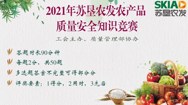 2月22日上午9時(shí),“2021年蘇墾農發(fā)農產(chǎn)品質(zhì)量安全知識競賽”以微信答題形式火熱開(kāi)展。本次競賽由蘇墾農發(fā)工會(huì )主辦,質(zhì)量管理部協(xié)辦,賽前公司工會(huì )充分組織動(dòng)員,發(fā)布了活動(dòng)通知和農產(chǎn)品質(zhì)量安全知識題庫,全體員工積極參與、認真準備,為比賽做了充分的預熱。此次比賽通過(guò)手機“問(wèn)卷星”軟件進(jìn)行,在短短一天內共收到有效問(wèn)卷1434份。試題由軟件從題庫中隨機抽取,分為單選、多選、判斷題三類(lèi),員工參與熱情高漲,作答迅速、準確率高,顯示了良好的職業(yè)素養。競賽決出一等獎獲得者十名,二等獎二十名,三等獎三十名,紀念獎四十名,有效提高了全體員工的農產(chǎn)品質(zhì)量安全意識,充分貫徹了農產(chǎn)品全程質(zhì)控理念,激發(fā)起全體員工學(xué)習熱情,形成了在質(zhì)量安全管理方面“比、學(xué)、趕、幫、超”的濃厚學(xué)習氛圍。通過(guò)此次比賽讓全體員工深入了解了國家有關(guān)農產(chǎn)品質(zhì)量安全的法律法規、相關(guān)機制。