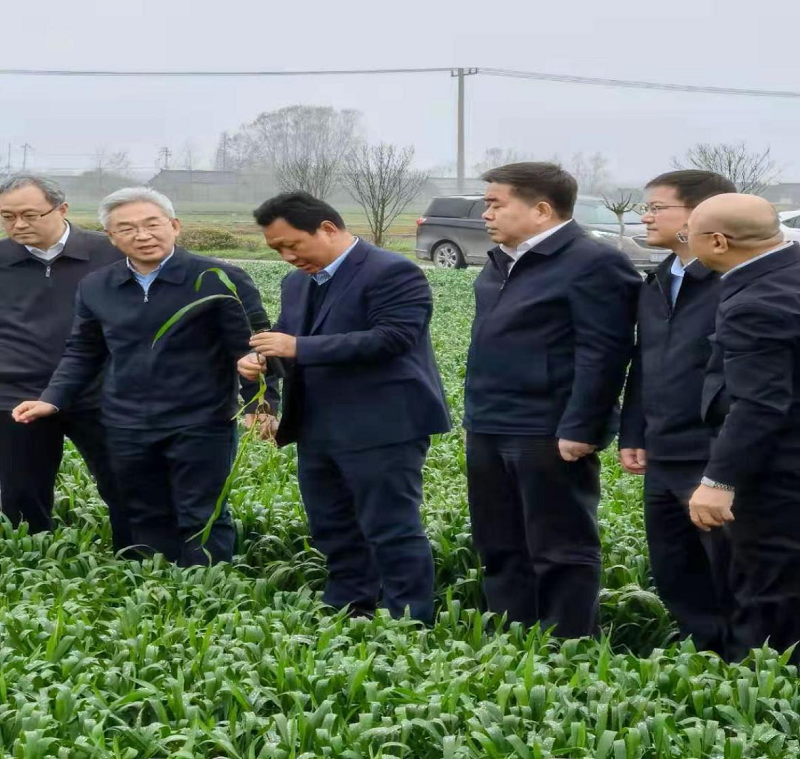 考察期間,張桃林一行先后考察了解了白馬湖分公司種子產(chǎn)業(yè)化發(fā)展情況,育種研究院華麥系列小麥新品種選育情況,聽(tīng)取了江蘇農墾圍繞打造現代農業(yè)“航母”江蘇號、著(zhù)力建設一流現代農業(yè)企業(yè)集團目標,在全面實(shí)施強核戰略、構建農業(yè)全產(chǎn)業(yè)體系,以及大華種業(yè)依托基地優(yōu)勢和科技實(shí)力,在促進(jìn)種業(yè)產(chǎn)學(xué)研結合、育繁推一體化發(fā)展方面的情況介紹。他對在田小麥的長(cháng)勢長(cháng)相及抗性表現等給予好評,對江蘇農墾、大華種業(yè)在推進(jìn)“中國碗主要裝中國糧 中國糧主要用中國種”所做的努力和探索表示欣慰。