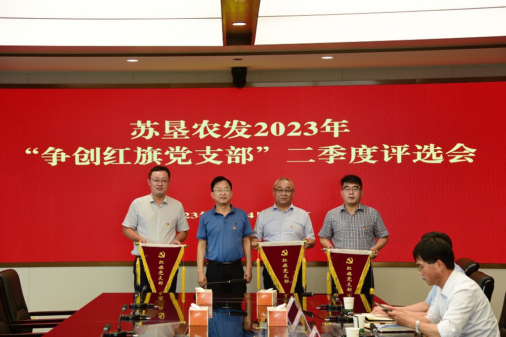 7月24日,蘇墾農發(fā)召開(kāi)2023年“爭創(chuàng )紅旗黨支部”第二季度評選會(huì )。公司黨委副書(shū)記、工會(huì )主席王進(jìn)強主持會(huì )議并講話(huà)。