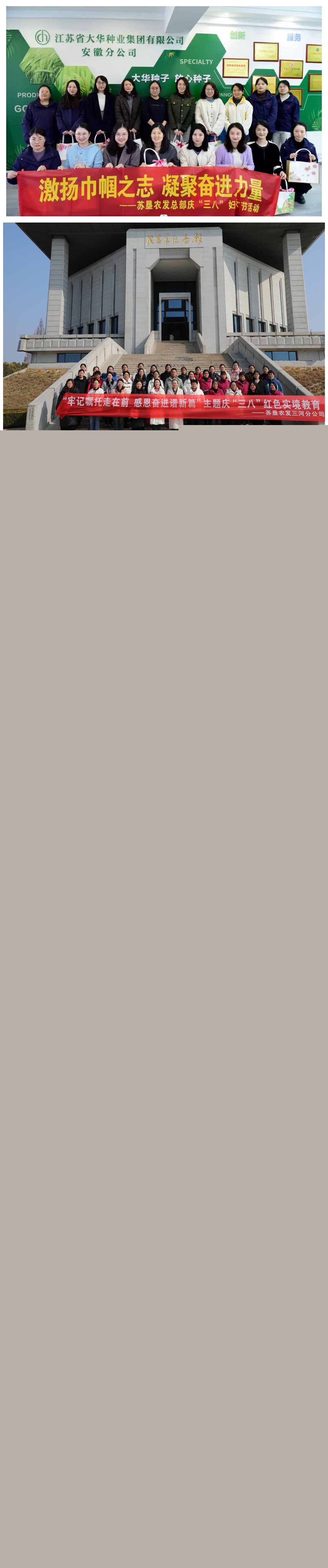 3月8日,東壩頭分公司女職工集體前往西瓜種植基地觀(guān)摩學(xué)習,增長(cháng)技能錘煉本領(lǐng),在“青藍師徒”傳習技能中度過(guò)了充實(shí)的節日。在西瓜大棚內技術(shù)員手把手教女職工如何判斷苗情,教授種植關(guān)鍵技巧,女職工們紛紛掏出筆記本詳盡記錄,不時(shí)發(fā)問(wèn)探討。蘇墾農發(fā)總部女職工來(lái)到大華種業(yè)安徽分公司,詳細了解了安徽分公司快速發(fā)展關(guān)鍵,學(xué)習他們在新媒體營(yíng)銷(xiāo)、網(wǎng)絡(luò )直播、品宣方面的成功經(jīng)驗,與分公司女職工熱情互動(dòng)交流。在淮海、新曹、白馬湖等分公司,女職工走進(jìn)了法律課堂,專(zhuān)業(yè)律師向女職工面對面普法。濱淮分公司,請來(lái)“江蘇好人”王月月開(kāi)展《中華人民共和國婦女權益保障法》解讀,現場(chǎng)解答婦女在工作生活中經(jīng)常遇到的相關(guān)法律問(wèn)題。在弶港分公司“慶三八”主題宣傳服務(wù)月啟動(dòng)會(huì )上,分公司不但為女職工送上了節日祝福,圍繞“一體化擴量”戰略,大家暢所欲言談構想、望愿景,勉勵女職工立足自身崗位,在提質(zhì)增效中發(fā)揮積極作用。南通分公司獲得“江蘇農墾最美人物”稱(chēng)號的29大隊隊長(cháng)黃婷與女職工分享自己二十年如一日堅守田頭的心路歷程。三河、復興圩分公司女職工開(kāi)展紅色實(shí)境教育,堅定理想信念,激發(fā)奮進(jìn)精神;臨海分公司女職工以歌詠比賽抒發(fā)內心喜悅,唱出未來(lái)憧憬。